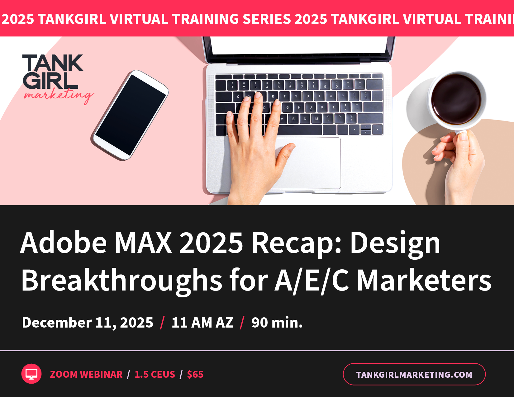 TankGirl Marketing’s Creative Director, Nikki Hasbun, brings the highlights straight to you with this fast-paced, design-forward session made just for A/E/C marketers.